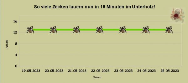 In den nächsten Tagen finden sich bis zu 13 Zecken in 15 Minuten im Unterholz.