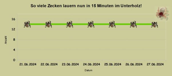 Verschlimmert wird die Situation in diesem Jahr noch durch das aktuell für die Parasiten sehr günstige Wetter. Das zuletzt häufig schwül-warme und feuchte Wetter hat die Zeckenzahlen in die Höhe getrieben: Bis zu 14 Zecken in 15 Minuten warten momentan im Unterholz auf eine Blutmahlzeit.