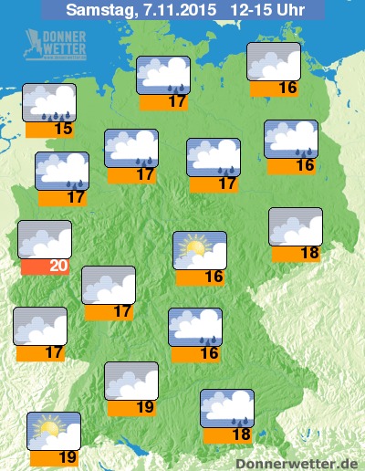 Am Nachmittag beschränken sich Regengebiete vor allem auf die Nordhälfte Deutschlands, einzelne Schauer sind zudem zwischen Franken und dem Alpenvorland zu erwarten. Die Sonne lässt sich nur selten blicken.