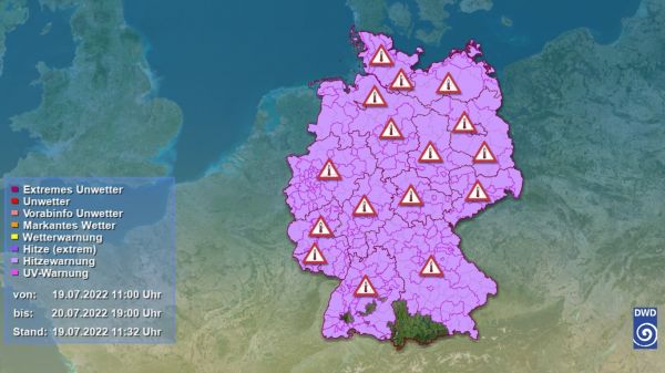 In weiten Teilen Deutschlands besteht eine amtliche Hitzewarnung des DWD: