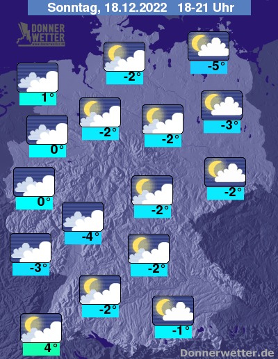Heute Abend ist es über der Osthälfte noch meist wechselnd bis aufgelockert, teilweise sogar gering bewölkt. Über der Westhälfte hat es sich dagegen schon weitgehend zugezogen, es bleibt jedoch auch hier noch trocken. Die Temperatur liegt bei -5 Grad in Neubrandenburg und 4 Grad in Freiburg.