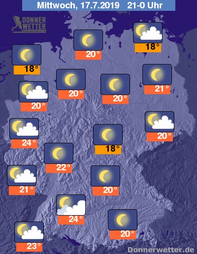 Am späteren Abend klart der Himmel dann verbreitet auf, lockere Wolken halten sich dann in erster Linie noch entlang von Rhein oder Oder. Es bleibt trocken.