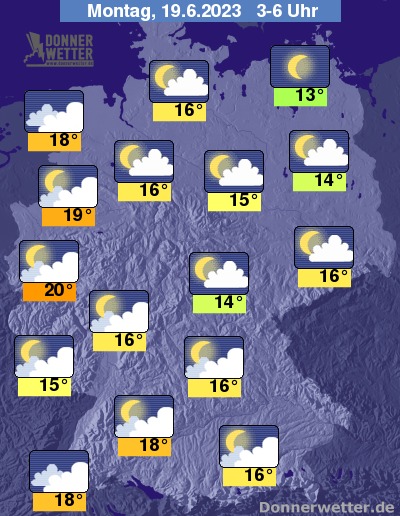 In der Nacht zum Montag ist der Himmel im Norden und Osten meist nur locker bewölkt. Weiter nach Südwesten hin zieht teils starke, teils aufgelockerte Bewölkung durch, dazu bleibt es weitgehend trocken. Die Temperatur sinkt auf tropische 20 Grad in der Kölner Bucht und bis 13 Grad in Rostock.