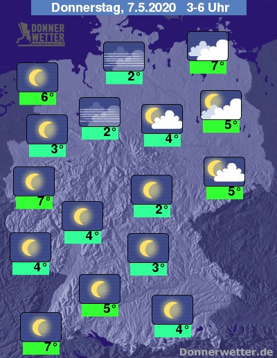 Bis zu den Frühstunden kühlt die Luft auf 1 bis 7 Grad ab, stellenweise muss mit Bodenfrost gerechnet werden.