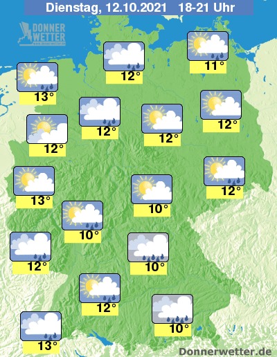 Heute Abend bilden sich im Süden weiterhin vielerorts Schauer und hier bleibt es weitgehend stark bewölkt, sonst werden die Schauer immer seltener und die Sonne kann sich häufig zeigen. Die Temperatur liegt bei 10 Grad in München und bis 13 Grad in Köln. An der Nordsee weht noch ein teils stürmischer Wind.