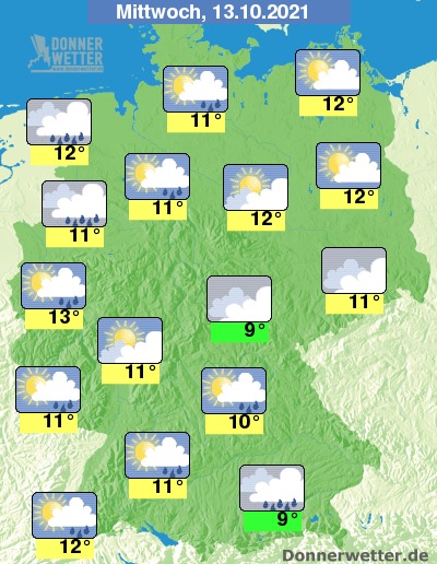 Am Mittwoch ist es häufig heiter bis wechselnd bewölkt, jedoch ziehen gebietsweise auch dichte Wolken durch, dabei sind einzelne Schauer möglich. Die Temperatur steigt auf 9 Grad in Erfurt und bis 13 Grad in der Kölner Bucht.