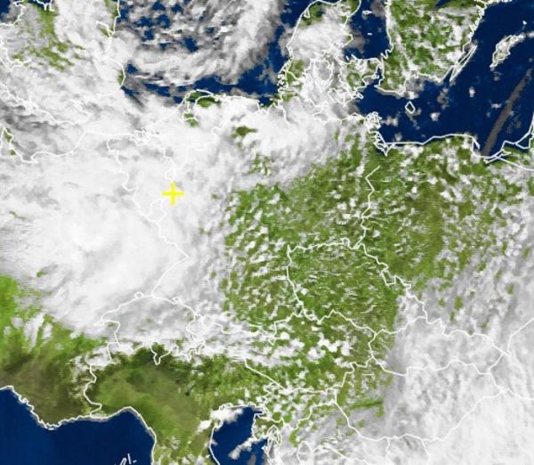 Schon in den letzten beiden Tagen kam es durch Schnee und Eis zu Unfällen in Deutschland. Sogar Tote forderte die extreme Wetterlage. Das wetterbestimmende Tief sehen Sie hier auf dem Bild hier unten. Besonders imposant sind die mächtigen Schauerwolken über Deutschland, die aus den Niederlanden und Belgien zu uns kommen.
