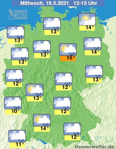 Heute Abend ist es weiterhin aufgelockert bis stark bewölkt, hier und da sind aber auch Aufheiterungen möglich. Es bilden sich zeitweise Schauer, lokal sind auch Gewitter möglich. Die Temperatur liegt bei 12 Grad am Taunus und bis 15 Grad in der Altmark.