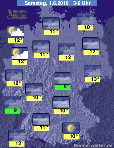 Bis zu den Frühstunden kühlt die Luf auf milde 8 bis 13 Grad ab.
