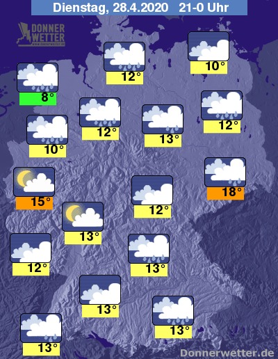 Am frühen Abend dominieren häufig die Wolken und bringen teilweise Regen oder Schauer. Örtlich kann es dabei auch blitzen und donnern. In Teilen von Mecklenburg-Vorpommern, sowie Sachsen bleibt es noch trocken.
