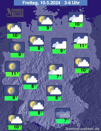 In der Nacht auf Freitag nimmt die Bewölkung im Nordosten Deutschlands zu, vereinzelt können hier auch mal ein paar Tropfen Regen fallen. In den übrigen Landesteilen ist es teils sternenklar, teils gering bewölkt und es bleibt niederschlagsfrei.