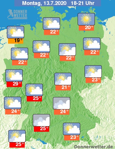In der Nacht zum Dienstag zeigt sich der Himmel überwiegend sternenklar. In den westlichen Landesteilen und im Alpenvorland ziehen jedoch oft einige, meist jedoch lockere Wolken durch. Im Emsland werden die Wolken bis zum Morgen verbreitet dicht und gegen Morgen ist hier etwas Regen möglich, sonst bleibt es trocken. Die Temperatur sinkt auf 15 Grad im Rheinland und bis 10 Grad im Vogtland.