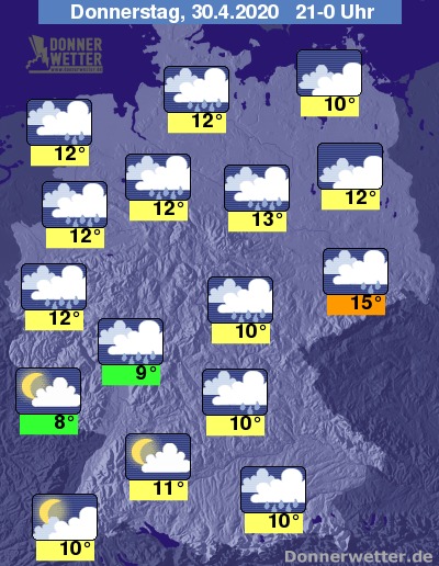 Am Abend fällt gebietsweise Regen oder es gehen Schauer nieder, im Südwesten und Westen zum Teil auch kräftiger. Einige Aufheiterungsphasen gibt es wahrscheinlich nur im Küstenumfeld von Nord- und Ostsee.