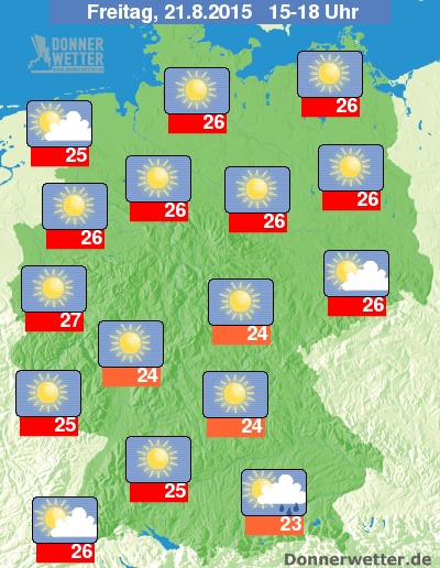 Die Temperaturen erreichen Werte von 22 Grad C bis zu 26 Grad C.