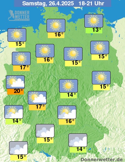 Heute Abend halten sich südlich des Mains noch oft einige, teils dichte Wolken, wobei es hier weitgehend trocken bleibt. Im übrigen Bundesgebiet ist es verbreitet sonnig oder es ziehen nur lockere Wolken durch, dabei bleibt es trocken. Die Temperatur liegt bei 13 Grad in Stralsund und bis 20 Grad in Köln.