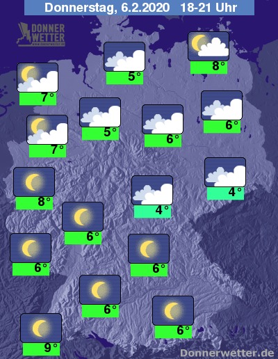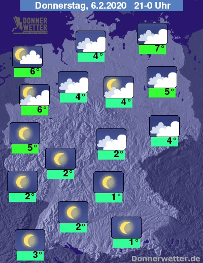Bis Mitternacht ändert sich an der Wetterverteilung recht wenig, die Temperaturen gehen allerdings zurück.