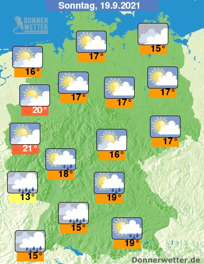 Heute Abend sind im Osten noch letzte Schauer möglich, sonst bleibt es hier und im Norden noch verbreitet stark bewölkt, Auflockerungen sind jedoch möglich. Im übrigen Bundesgebiet ist es gebietsweise stark, zumeist jedoch nur locker bewölkt oder sogar sonnig. Die Temperatur liegt bei 15 Grad in der Lausitz und bis 24 Grad im Rheinland.