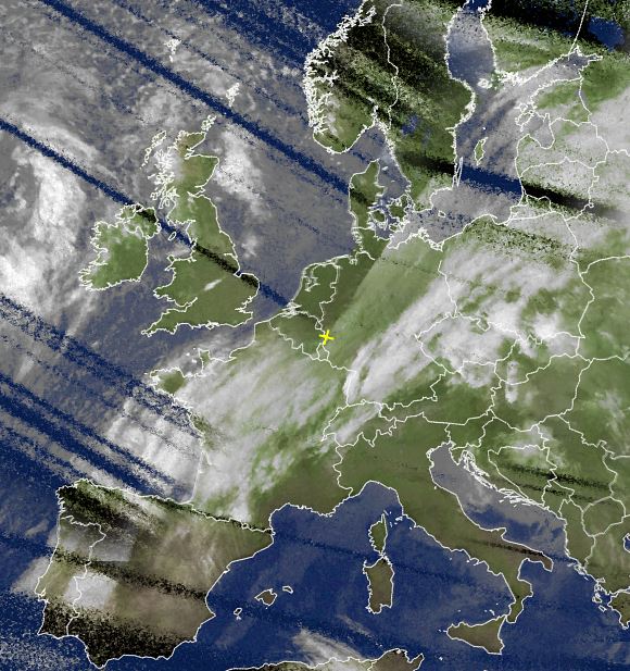 Auf dem Satellitenfoto von heute Morgen ist der Ausläufer von Tief "Leonie" mit Kerndruck über dem südlichen Skandinavien zu erkennen. Der Tiefausläufer erstreckte sich dabei von der Iberischen Halbinsel, über Frankreich, das südliche Deutschland, Polen bis weit in den Nordosten Europas hinein und brachte in diesem Streifen häufig Regen.