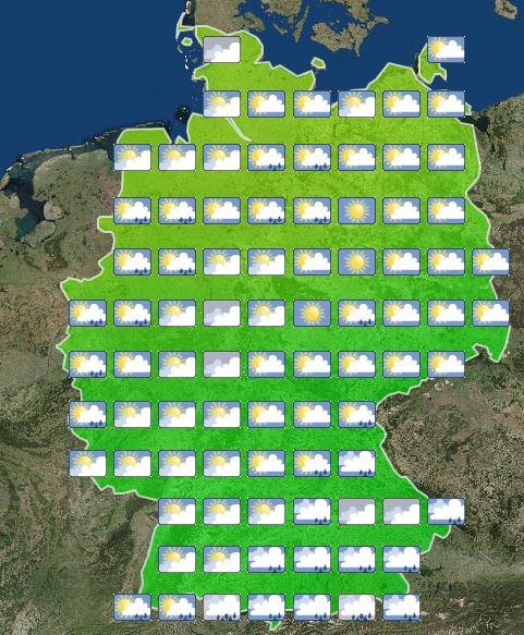 Heute Abend bleibt es im Süden meist stark bewölkt bei zeitweiligen Regenfällen. In einem breiten Streifen von Rheinland-Pfalz, über NRW bis nach Niedersachsen halten sich ebenfalls oft dichte Wolken und es bilden sich gebietsweise Schauer. Im übrigen Bundesgebiet ist es teils locker, teils auch stärker bewölkt, jedoch zum Großteil trocken. Die Temperatur liegt bei 9 Grad in Berchtesgaden und bis 19 Grad in Ostbrandenburg.