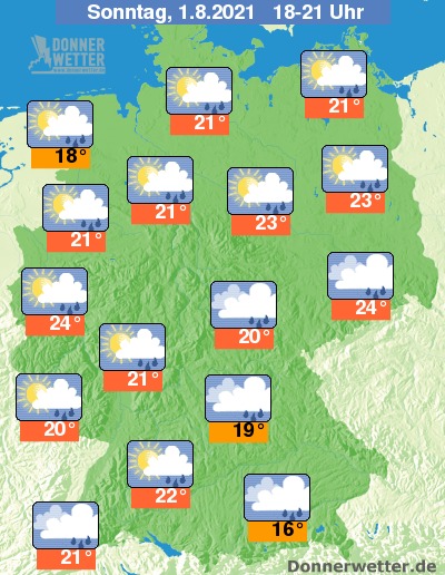 Heute Abend ist es weiterhin verbreitet aufgelockert oder stark bewölkt, dabei bilden sich zunächst noch vielerorts Schauer und vereinzelte Gewitter, die jedoch im Laufe des Abend immer weiter nachlassen. Die Temperatur liegt bei 16 Grad im Berchtesgadener Land und bis 24 Grad im Rheinland.