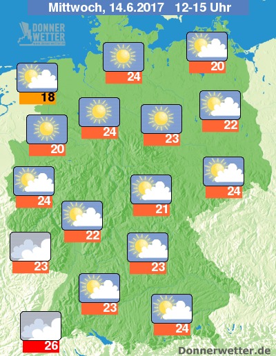 Heute Nachmittag ist es vor allem über der Nordhälfte verbreitet sonnig oder nur gering bewölkt. Weiter nach Süden hin ziehen etwas mehr Wolken durch, dichter werden diese jedoch nur entlang von Ober- und Mittelrhein, aber auch hier bleibt es vorerst trocken. Die Temperatur liegt bei kühlen 18 Grad an der Nordseeküste und bei sommerlichen 26 Grad im Raum Freiburg.