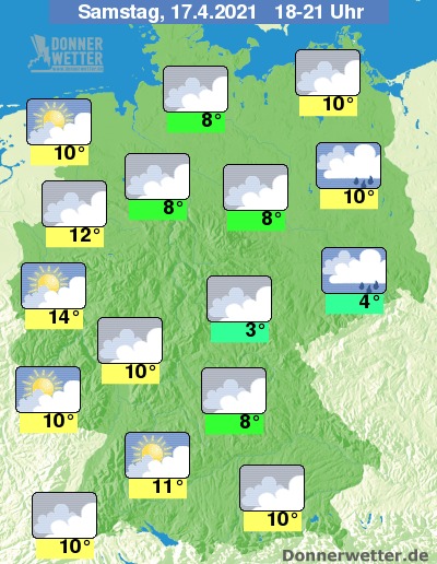 Heute Abend fällt im Osten unter kompakten Wolken gebietsweise etwas Regen. Im übrigen Land ist es meist stark, nach Süden und Westen hin auch gebietsweise aufgelockert bewölkt, dabei bleibt es trocken. Die Temperatur liegt bei 3 Grad in Jena und bis zu 14 Grad in Köln.