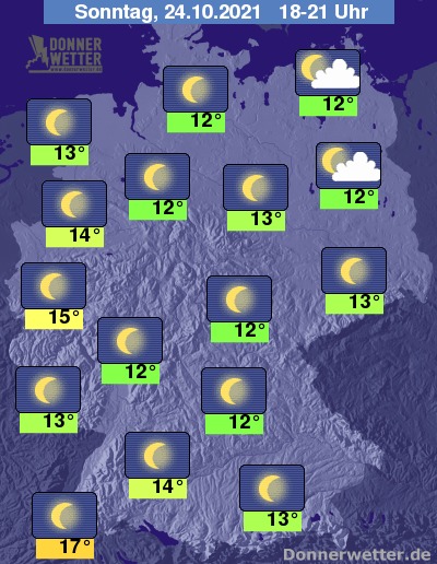 In der Nacht zum Montag ist der Himmel über der Bundesrepublik sternenklar, dazu bleibt es trocken. Die Temperatur sinkt auf 9 Grad in Freiburg und bis etwa 2 Grad in Jena.