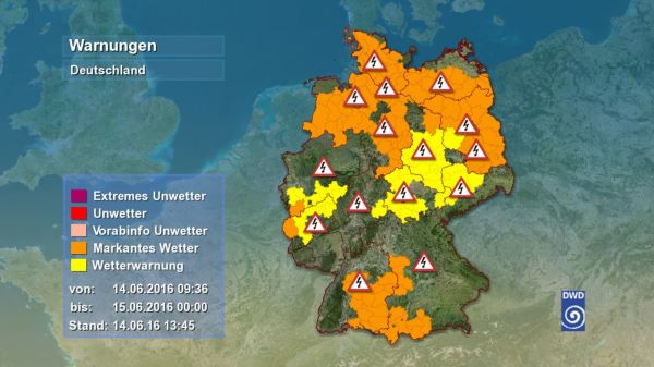 Aktuell bestehen über vielen Landesteilen von Deutschland wieder amtliche Warnungen vor markantem Wetter, dabei sind neben teils kräftigen und ergiebigen Niederschlägen auch einzelne Gewitter möglich. Die Wetterwarnungen gelten vor allem für den Norden und Osten des Landes sowie für große Teile von Baden-Württemberg.