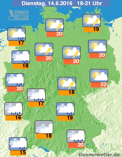 Heute Abend sind besonders vom Norden bis zur Mitte Deutschlands noch einzelne Schauer möglich, zudem bilden sich gebietsweise auch Schauer, dazwischen kann sich aber auch die Sonne zeigen. Weiter nach Süden hin bleibt die Wolkendecke überwiegend verschlossen und es muss wiederholt mit Schauern, am Alpenrand mit teils langanhaltendem und ergiebigem Regen gerechnet werden. Die frühen Abendtemperaturen liegen bei 22 Grad in der Lausitz und um 15 Grad am Bodensee.