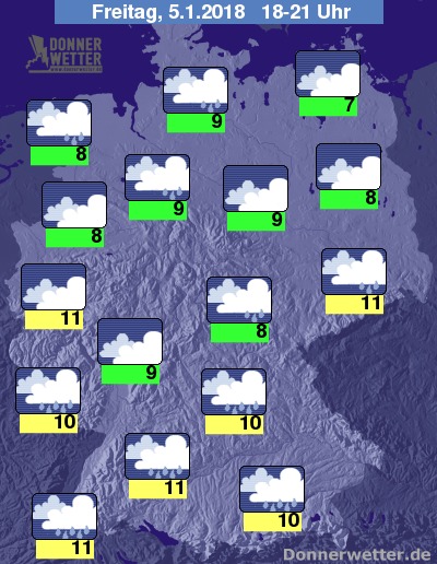 Die Höchstwerte erreichen dazu maximal 7 Grad auf Rügen und bis zu 11 Grad entlang von Rhein und Donau.