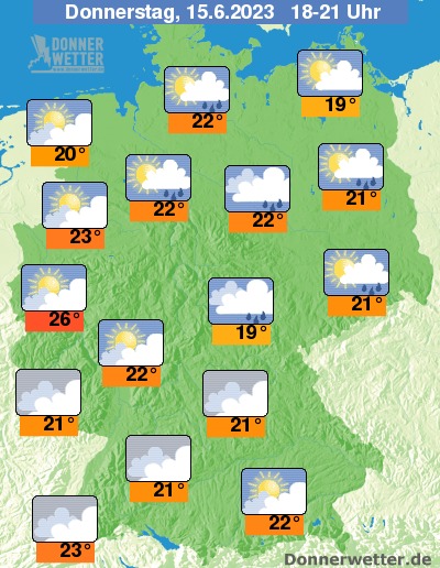 Heute Abend ziehen oft viele und vor allem im Norden und Osten kompakte Wolken durch, die hier einzelne Schauer, selten auch Gewitter bringen können. Im Süden und Westen ist es meist wechselnd, teils aber auch stark bewölkt, dazu bleibt es trocken. Die Temperatur liegt bei 19 Grad in Rostock und bis 26 Grad in Köln.