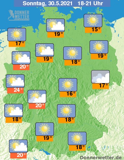 Heute Abend scheint verbreitet die Sonne und es ziehen weitgehend nur lockere Wolkenfelder durch. Dichte Wolken sind nur rund ums Erzgebirge möglich, es bleibt aber auch hier trocken. Die Temperatur liegt bei eher kühlen 15 Grad in Rostock, jedoch bei fast schon sommerlichen 24 Grad in der Kölner Bucht.