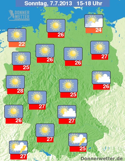 Hoch 'Xena' bringt den Hochsommer! Am Wochenende steigen die Temperaturen nahezu in ganz Deutschland über die 25-Grad-Marke. In der Südhälfte sind sogar Werte über 27 Grad möglich. Es gibt viel Sonnenschein, vielerorts bleibt es trocken, das Schauerrisiko ist im Süden am größten.