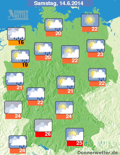 Am Samstag sind bei teils heiterem Himmel, teils wechselnder Bewölkung örtliche Schauer möglich. Vor allem in der Südwesthälfte bleibt es auch häufiger bedeckt. Die Temperaturen steigen auf Höchstwerte um 16 Grad in Ostfriesland und um 26 Grad im Südwesten.