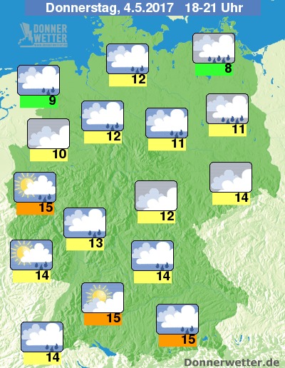 Die Höchstwerte werden am späten Nachmittag erreicht und liegen zwischen 8 Grad an der Ostsee und 15 Grad am Niederrhein und im Voralpenland.