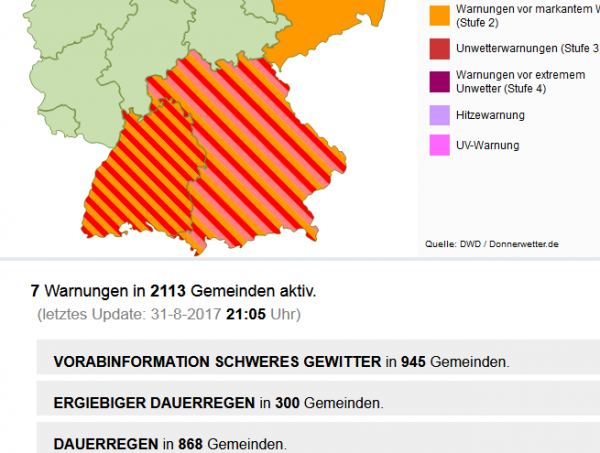 Unwetterwarnungen aktiv