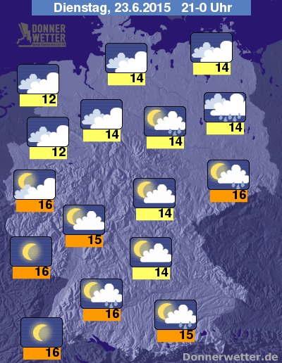 Heute Abend zeigt sich die Südhälfte der Bundesrepublik oft locker, gebietsweise aber auch stark bewölkt, dabei sind hier und da einzelne Schauer möglich, zumeist bleibt es aber trocken. Nach Norden hin ziehen hingegen oft dichte Wolken durch und gebietsweise ist mit Schauern zu rechnen. Die Abendtemperatur liegt bei 16 Grad im Breisgau und etwa 12 Grad im Emsland.