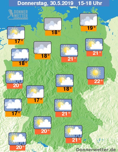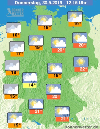 Die Temperaturen liegen bei 14 Grad, dort wo es regnet und bei angenehmen 22 Grad, dort wo längere Zeit die Sonne scheint, wie z.B. in Sachsen.
