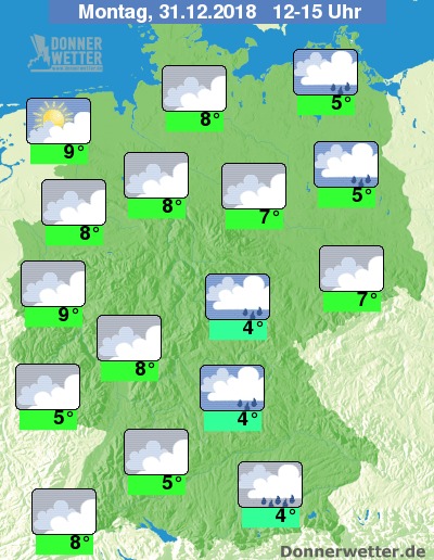 In den Mittagsstunden überwiegt meist eine dichte Wolkendecke das Land. Dazu vereinzelte Schauer im Norden um Brandenburg und der Ostsseeküste. Im Süden um Oberbayern kann es zeitweise auch zu kräftigeren Niederschlägen kommen.