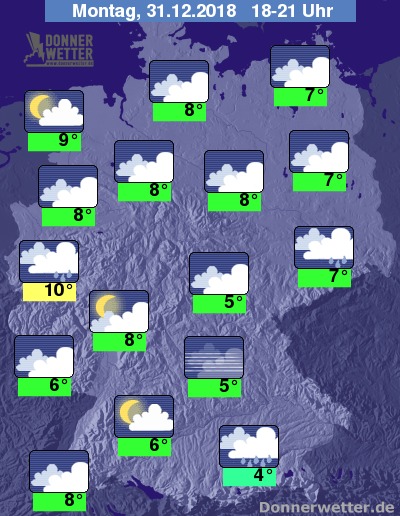 Heute Abend bleibt es weitestgehend bedeckt, nur im westlichen Teil kann es gebietweise ein wenig auflockern. Mit Schauern muss in der Eifel und im Erzgebirge gerechnet werden. Der Regen setzt sich weiterhin um Bayern durch.