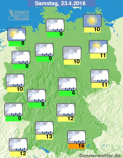 Heute bleibt es über der Südhälfte der Republik weitestgehend bedeckt und es fällt zeitweise Regen. Weiter nach Norden hin ist es zum Teil aufgelockert bewölkt, oft ziehen aber auch dichte Wolken durch und es bilden sich einzelne Schauer. Häufigen Sonnenschein erwarten wir jedoch im Küstenumfeld von Nord- und Ostsee, jedoch sind auch hier vereinzelt Schauer möglich. Die Temperatur steigt auf teils nur 6 Grad im Grabfeld und bis 16 Grad in Augsburg.
