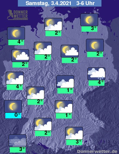 In der kommenden Nacht können sich am Erzgebirge und in der Lausitz hier und da einzelne Regen- oder Schneeschauer bilden. Im übrigen Land ist es gebietsweise stark bewölkt, oft ist es aber auch nur locker bewölkt oder sternenklar, dazu bleibt es trocken. Die Temperatur sinkt auf 4 Grad in Dresden und bis 0 Grad in Saarbrücken.