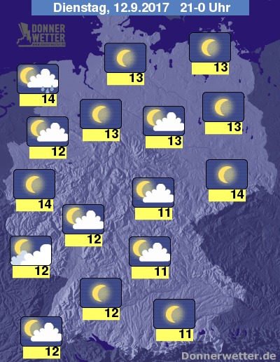 Nachts noch häufig klar oder locker bewölkt, Sturmtief 'Sebastian' nimmt aber bereits Kurs.