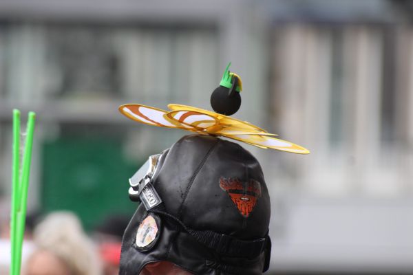 Viele Jecken hatten in Deutschland ihren Spass. Es war meist sonnig, neben einigen Schauern und natürlich windig. So richtig stürmisch war es aber meist nicht. Dieser Jeck hatte sogar einen Propeller auf dem Kopf.