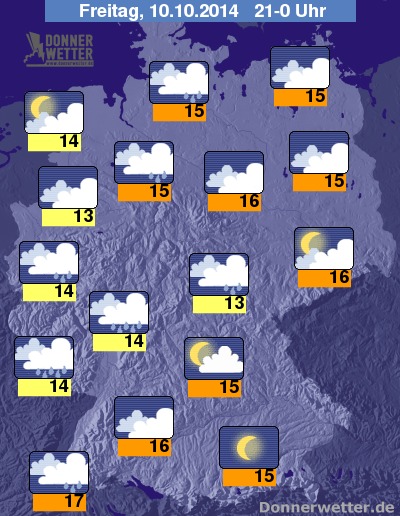 Heute Abend ist es im Südosten Deutschlands verbreitet sternenklar oder nur leicht bewölkt und trocken, sonst ziehen dagegen meist viele und dichte Wolken durch und gebietsweise fällt auch Regen. Die Abendtemperatur liegt bei 16 Grad im Leipziger Land und etwa 13 Grad am Teutoburger Wald.