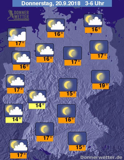 Während der zweiten Nachthälfte bleibt es klar oder nur leicht bewölkt, vereinzelt können sich in Tälern, Mulden, sowie an Gewässern Nebelfelder bilden. Bis zu den Frühstunden kühlt die Luft auf laue 14 bis 17 Grad ab. In Sachsen bleibt es zum Teil noch etwas milder.