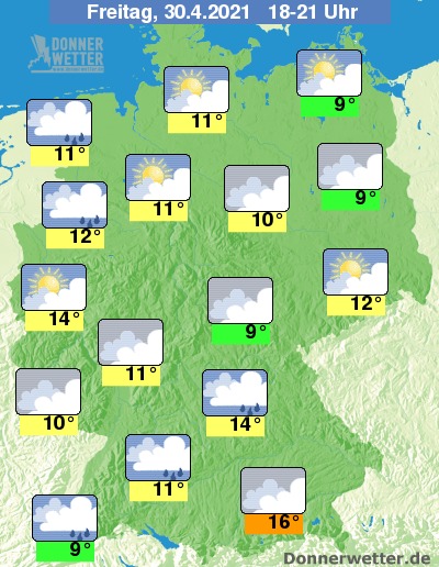 Heute Abend bleibt es weiterhin meist stark bewölkt, über der Nordhälfte des Landes sind regionale Auflockerungen möglich. Im Süden und Nordwesten der Republik fällt gebietsweise Regen oder es bilden sich einzelne Schauer, sonst bleibt es weitgehend trocken. Die Temperatur liegt noch bei 9 Grad in Berlin und bis 16 Grad in München.