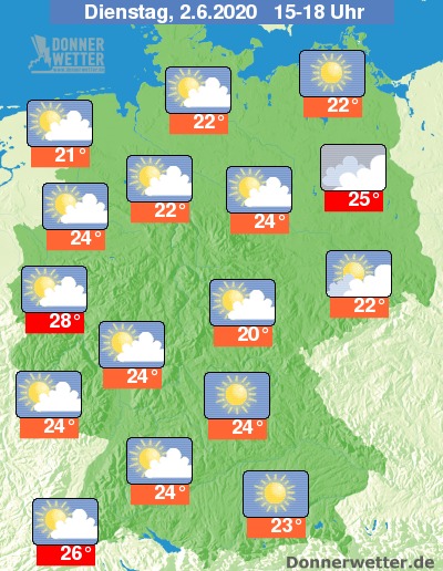 Die Temperaturen bewegen sich im frühsommerlichen Bereich von 20 bis 26 Grad.