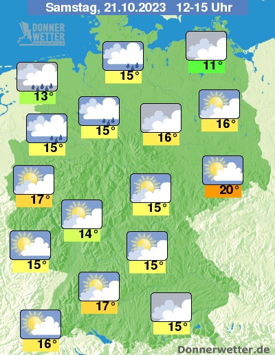 Heute Nachmittag ist es über dem Norden meist dicht bewölkt, dazu fällt vor allem im Nordwesten zeitweise Regen. Im übrigen Land ist es oft locker bis aufgelockert bewölkt und trocken. Im Süden können dichte Wolken hier und da etwas Regen bringen. Die Temperatur liegt bei 11 Grad in Vorpommern und bis 20 Grad in der Lausitz.