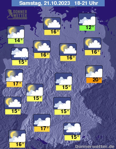 Heute Abend ziehen gebietsweise dichte Wolken durch, oft ist es aber auch nur leicht bis aufgelockert bewölkt. An Niederrhein und Ems, sowie an den Alpen sind hier und da einige Tropfen möglich, sonst bleibt es weitgehend trocken. Die Tempertur liegt bei 12 Grad in Stralsund und 20 Grad in Dresden.